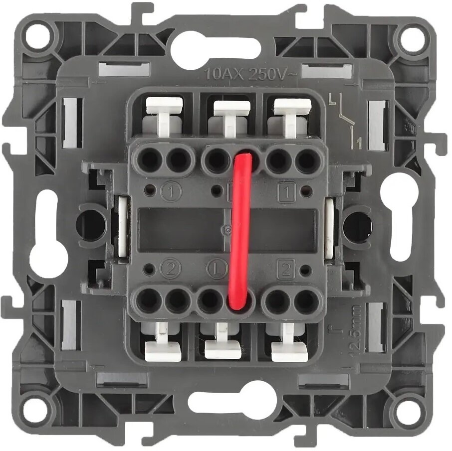 Проходной выключатель ЭРА 12-1106-01, двухклавишный, в пластиковом корпусе, белый, размером 75×75×33мм, 10А 250В IP20 / электрика