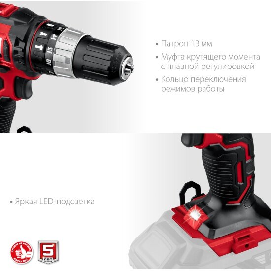 Ударная дрель-шуруповерет ЗУБР ДШУ-18518В, без АКБ, в коробке