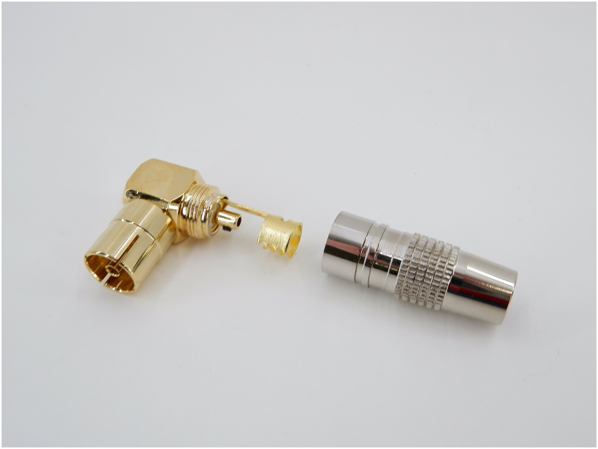 Разъем CABLEXPERT TVPL-08 ,TV (мама) позолоченный, латунь OD8.5, 90 градусов, блистер