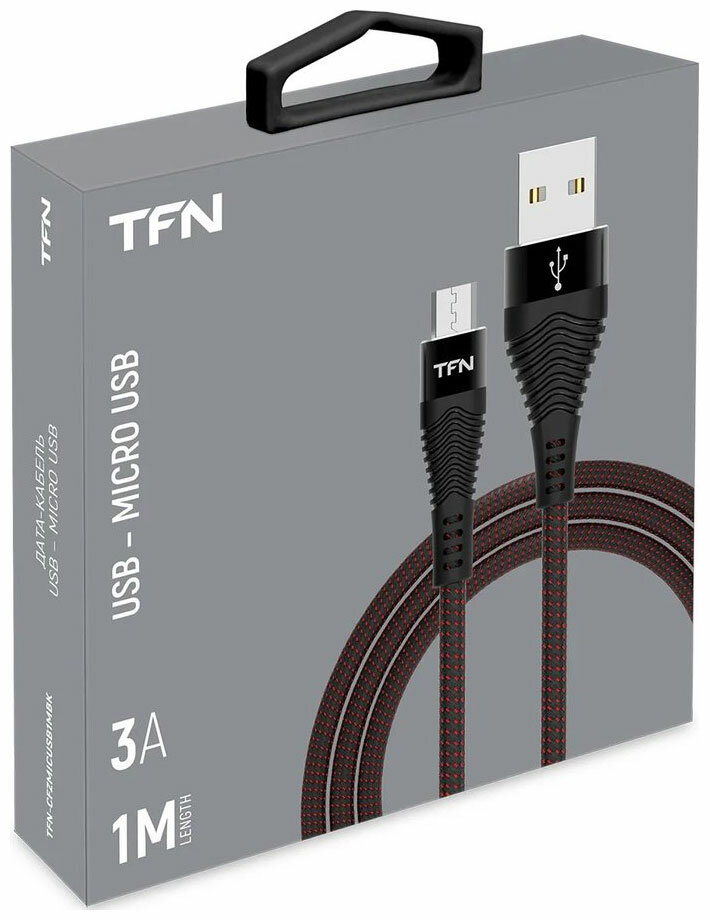 Кабель USB TFN Micro USB Nylon 3A 1m. Black Red (CFZMICUSB1MBK)