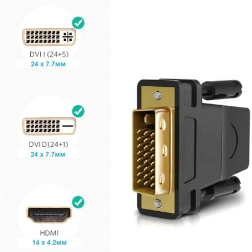 Видео адаптер DVI-HDMI 25M/F dual link KS-470 папа-мама переходник для подключения монитора - чёрный