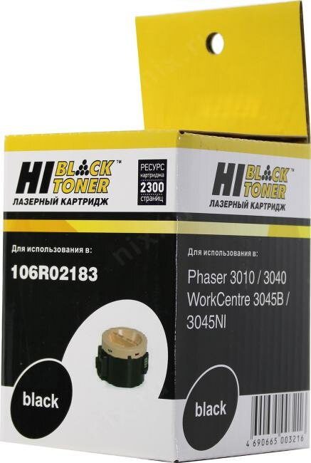 | Модель совместимого принтера | Xerox Phaser 3010 / Xerox Phaser 3040 / Xerox WorkCentre 3045 / Тонер-картридж Hi-Black (HB-106R02183) для Xerox Phaser 3010/3040/WC 3045B/3045NI / 2,3K |