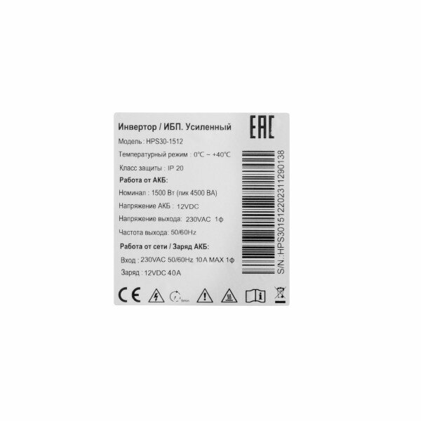 | Выходная мощность (полная) | 1500 ВА / 1500 ВА |