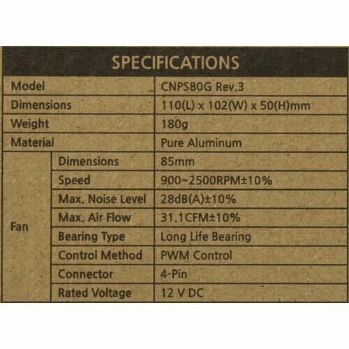 Zalman Устройство охлаждения кулер CNPS80G Rev.1 Soc-AM4 AM3+ 1150 1151 1200 4-pin 19-25dB Al 65W 180gr Ret