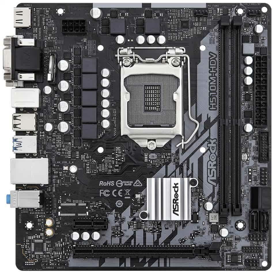 Материнская плата ASRock H510M-HDV R2.0 (Socket1200,H510,mATX,2DDR4,2PCI-E16,4SATA3,VGA,DVI,HDMI,PC3200)