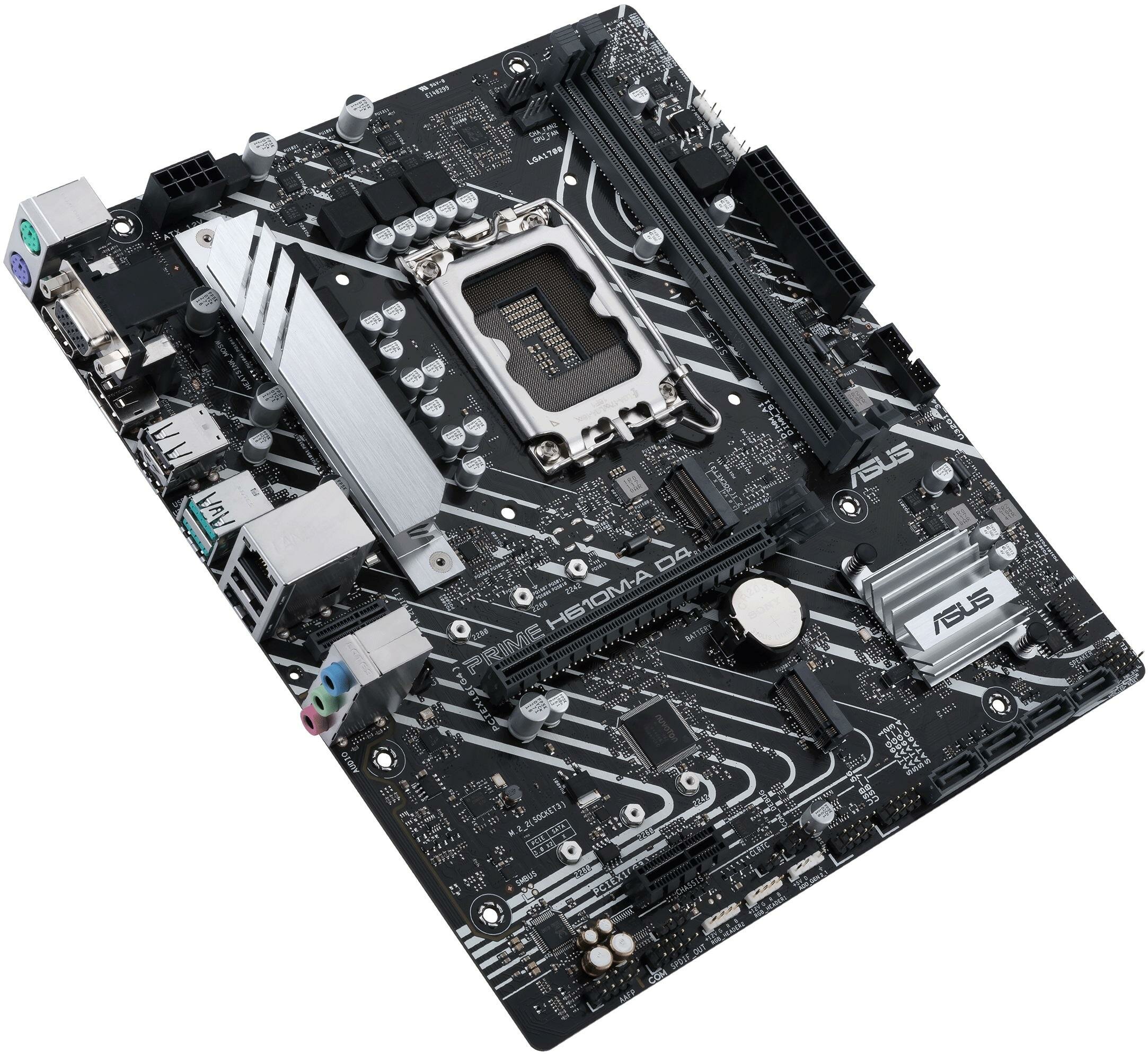 Материнская плата ASUS PRIME H610M-A D4-CSM Socket 1700, Intel H610, 2xDDR4, PCI-E 4.0, 2xUSB 3.2 Gen2, VGA, HDMI, DisplayPort, mATX
