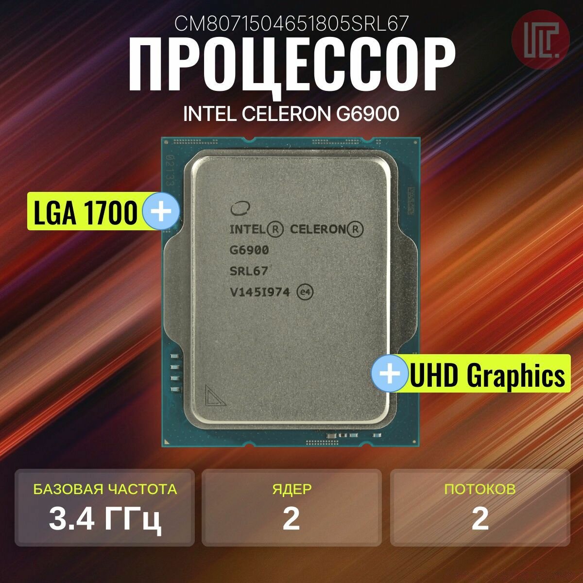 ABC Процессор Intel Celeron G6900 CM8071504651805 (3.40ГГц, 4МБ, GPU) Socket1700 (без кулера) (oem)