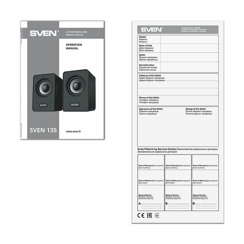 Колонки Sven 135, 2.0, черный [sv-020231]