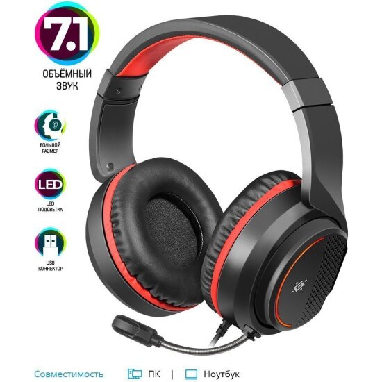 Гарнитура игровая Defender Apex Pro, для компьютера, накладные, черный / красный [64526]