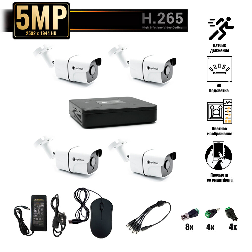 Комплект видеонаблюдения Optimus на 4 уличные камеры - AHD 5Мп 1952P интересное: