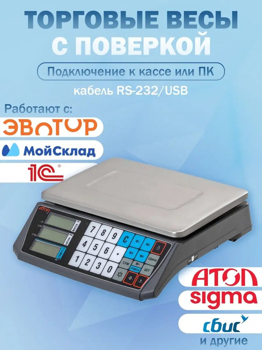 Весы АТОЛ MARTA (без стойки, СОМ порт, кабель USB-RS, кабель RS-232, лицензия FDU) с поверкой интересное: