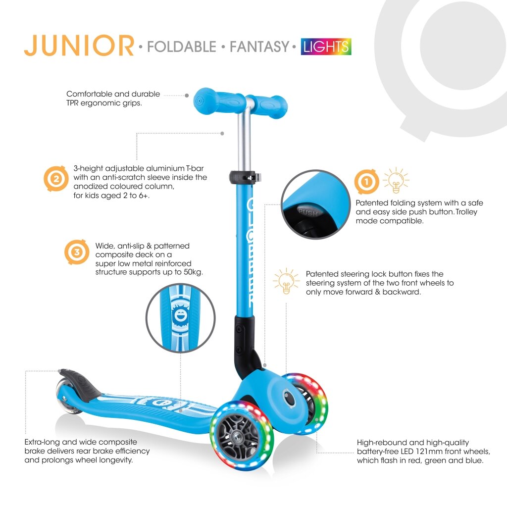 Самокаты для детей GLOBBER JUNIOR FOLDABLE FANTASY LIGHTS 433-101 Цвет-Голубой