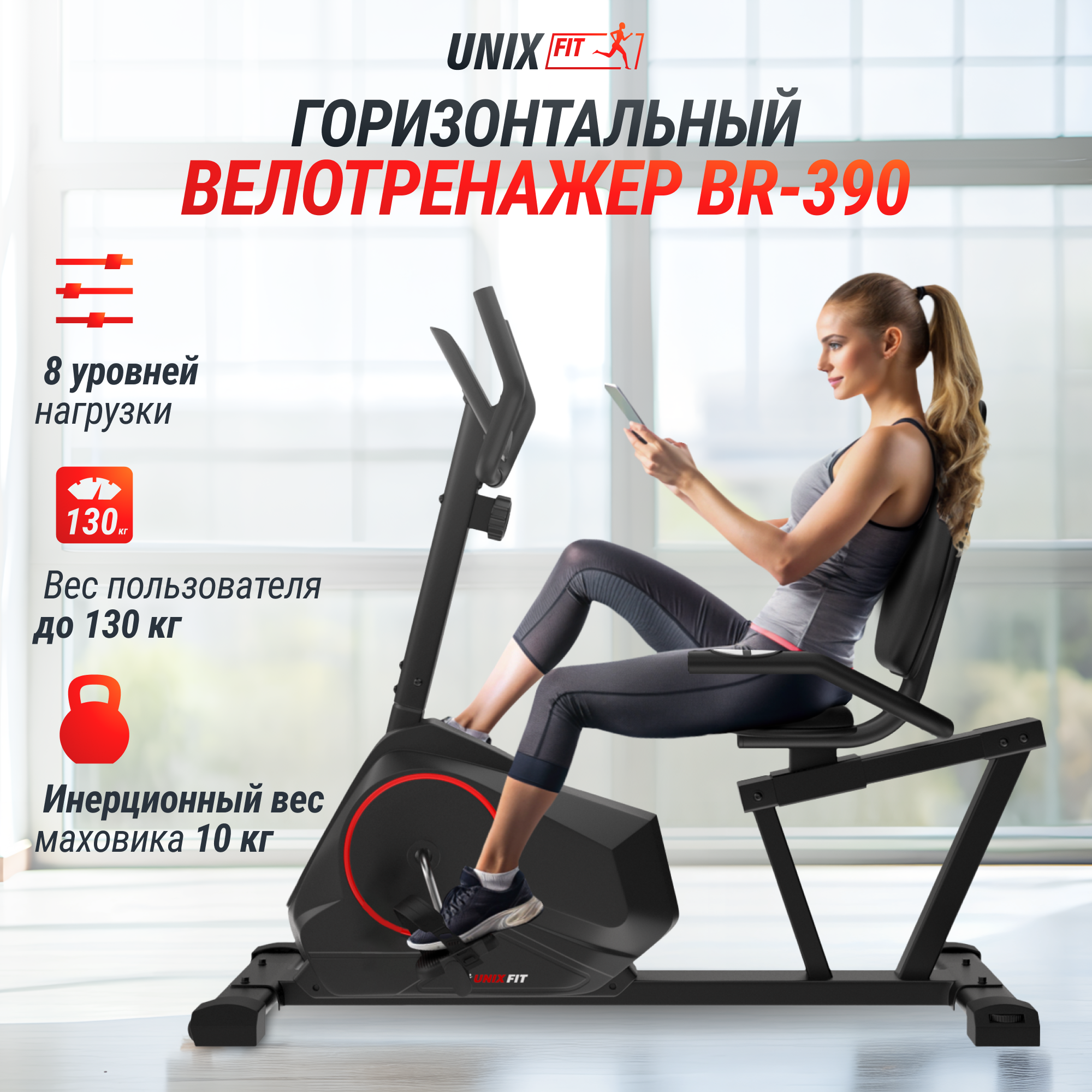 UNIXFIT™ Горизонтальный велотренажер UNIXFIT BR-390