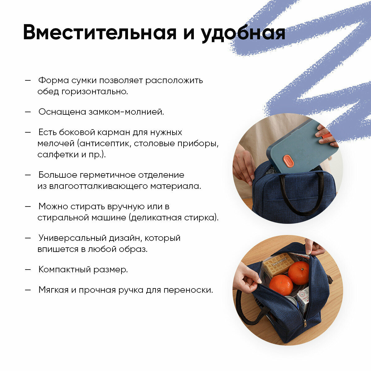 Термосумка для еды/ для бутылочек/ детская/ сумка для ланча/ для ланчбокса ZDK Homium, синяя