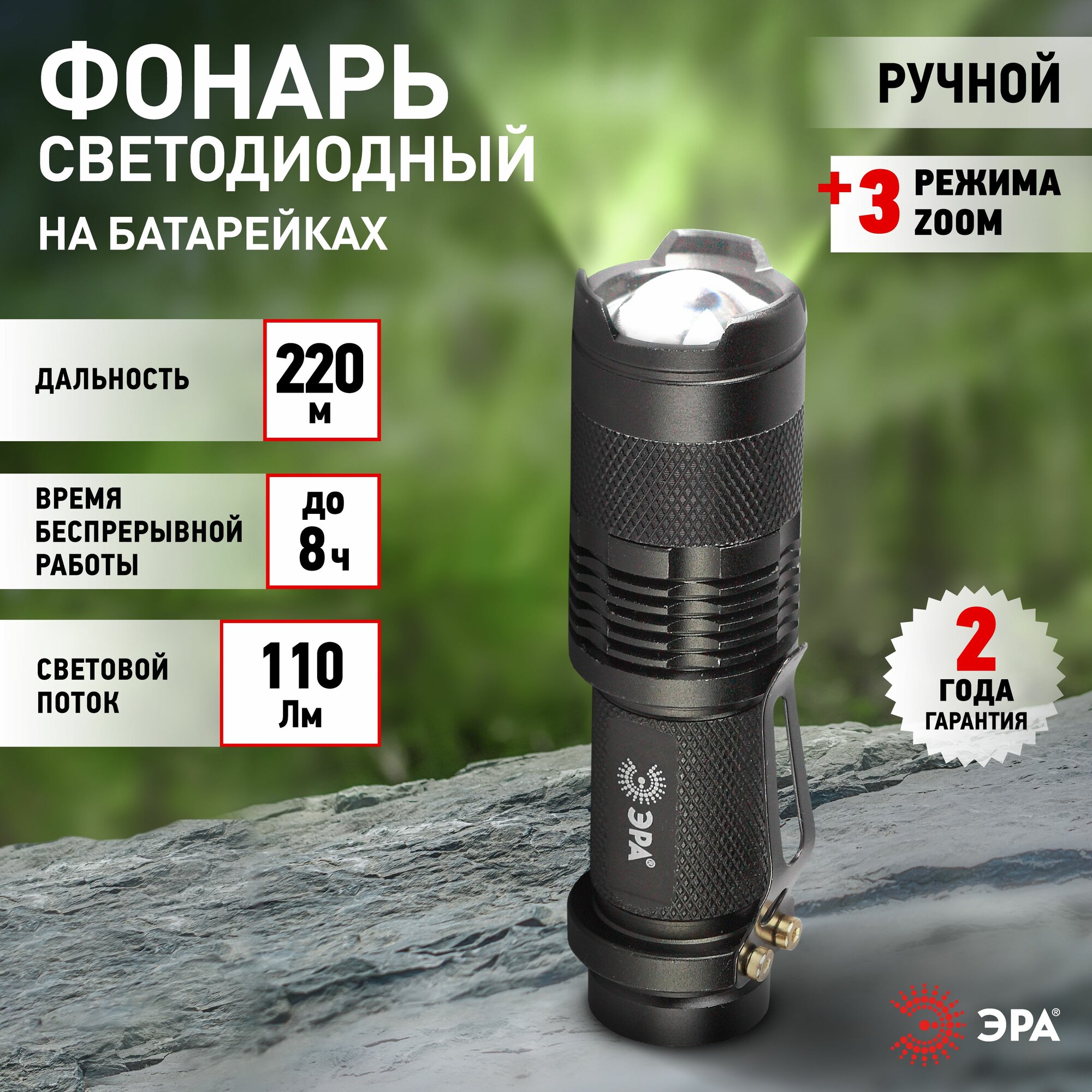 Фонарь кемпинговый светодиодный UB-602 ЭРА мощный туристический ручной на батарейках / Фонарик карманный светодиодный с регулируемым фокусом, 3 режима