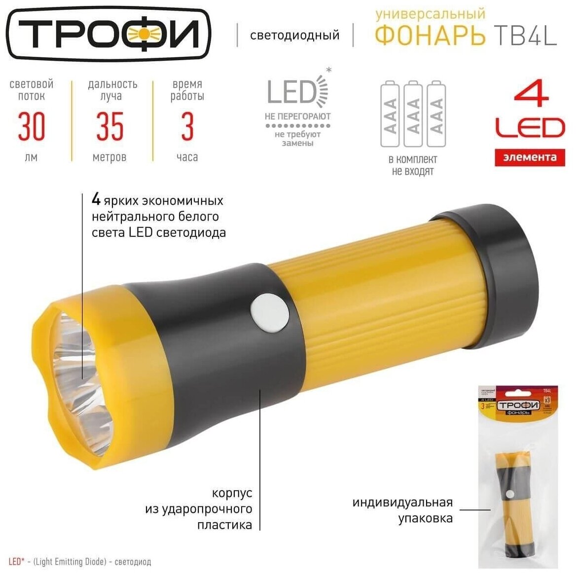 Фонарь TB4L 4хLED пластик 3хAAA полиб. Трофи Б0025679