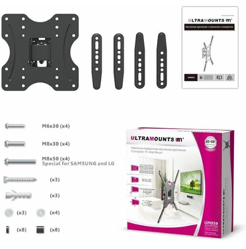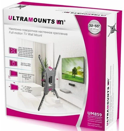 Кронштейн для телевизора ULTRAMOUNTS UM 859, 32-55", настенный, поворот и наклон, черный