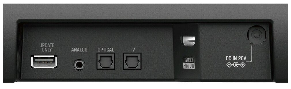 | Плюсы: | Неплохо играет для своих размеров. Есть отдельное усиление низких частот, компактный размер - хорошо смотрится по средних размеров телевизором. |