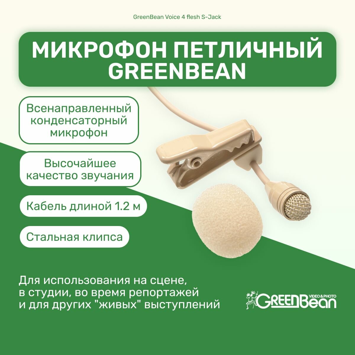 Оборудование для фото и видео GreenBean Микрофон петличный GreenBean Voice 4 flesh S-Jack