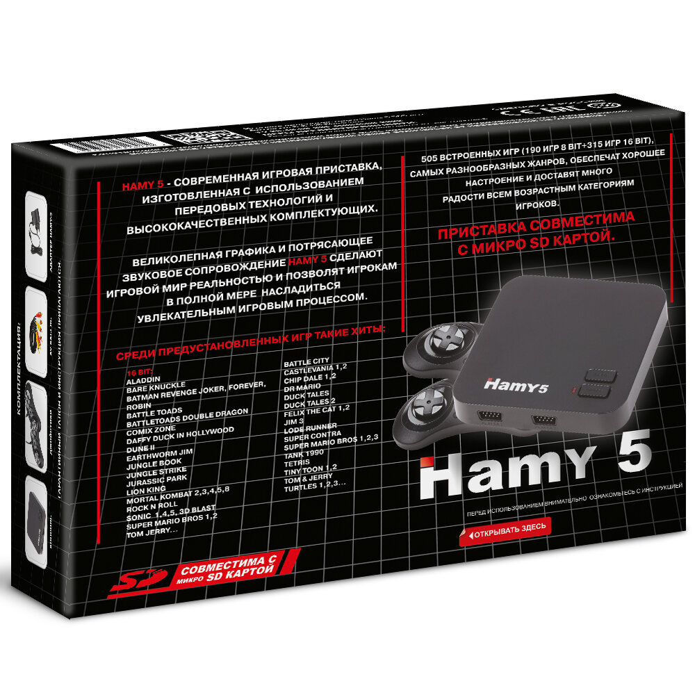 Игровая Приставка "Hamy 5" (16+8 Bit) (505в1) Черная (черная коробка) интересное: