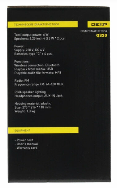 Проигрыватель CD/MP3/USB/Блютус Dex 320 (магнитола)