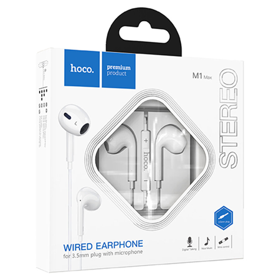Наушники внутриканальные HOCO M1, Max, Jack 3.5мм, 1.2 м, цвет: белый