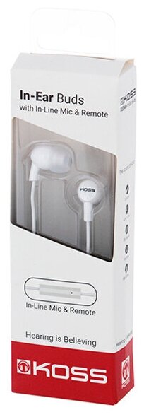 Наушники вкладыши с микрофоном Koss KEB4iW, мобильная гарнитура, белая