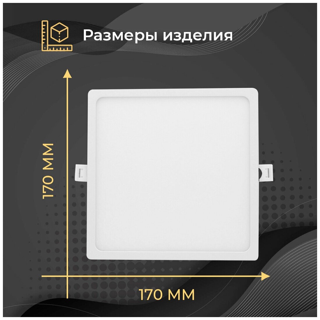 Светодиодный светильник-панель в форме квадрата / Врезная светодиодная квадратная панель с изолированным драйвером / Встраиваемое LED освещение для внутренних помещений / PF 0.5 / 20Вт / ХБ 6500К / 1600Лм / IP40 / 220В / 170 мм