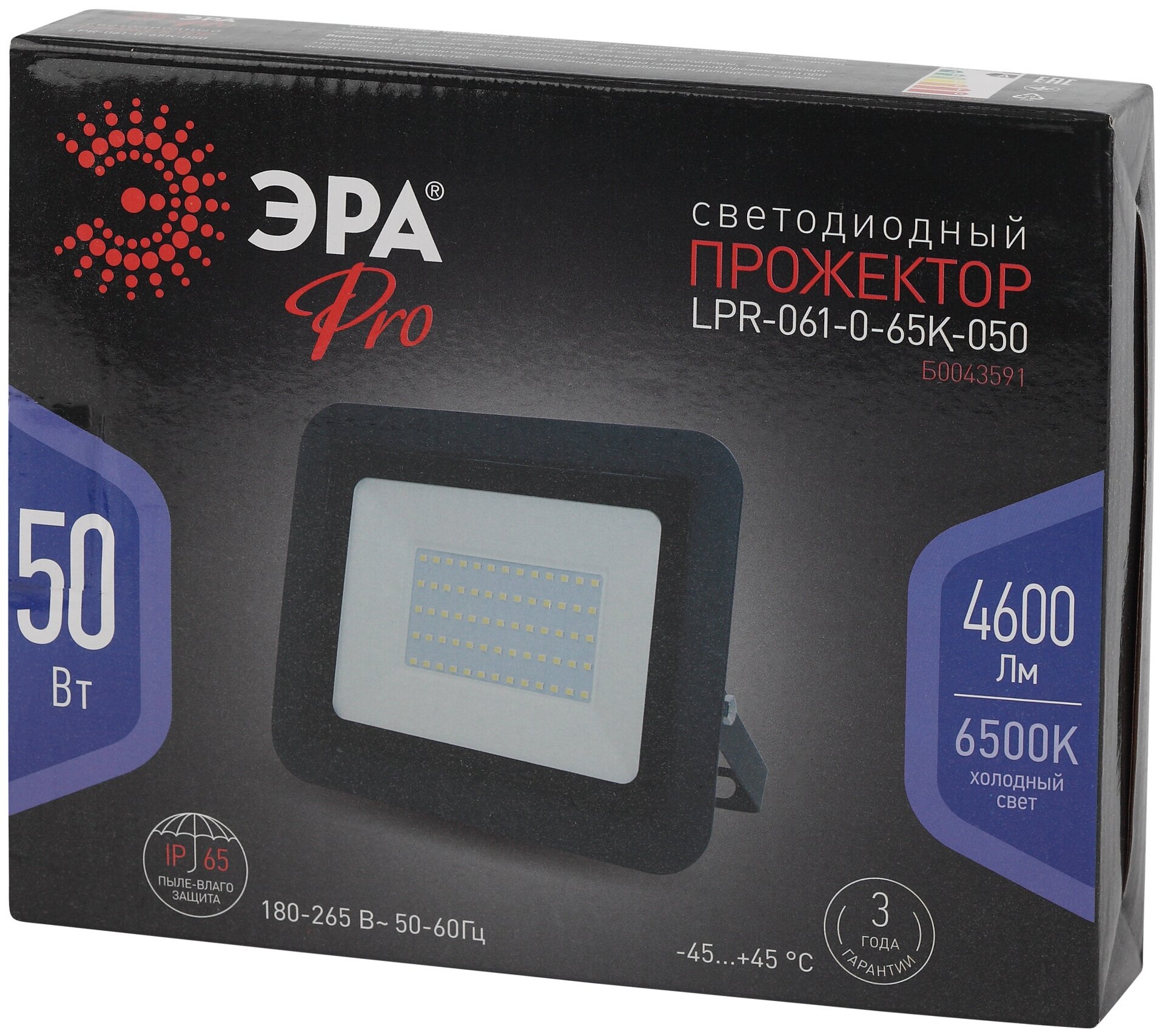 Прожекторы PRO LPR-061-0-65K-050 ЭРА Прожектор св 50Вт 4600Лм 6500К 205x165x33 .