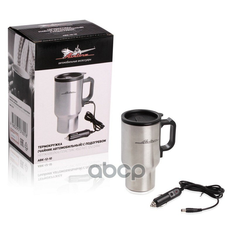 AIRLINE ABK-12-10 Термокружка (чайник автомобильный) с подогревом нержавейка/пластик 450 мл 12V 24W (ABK-12-10 )