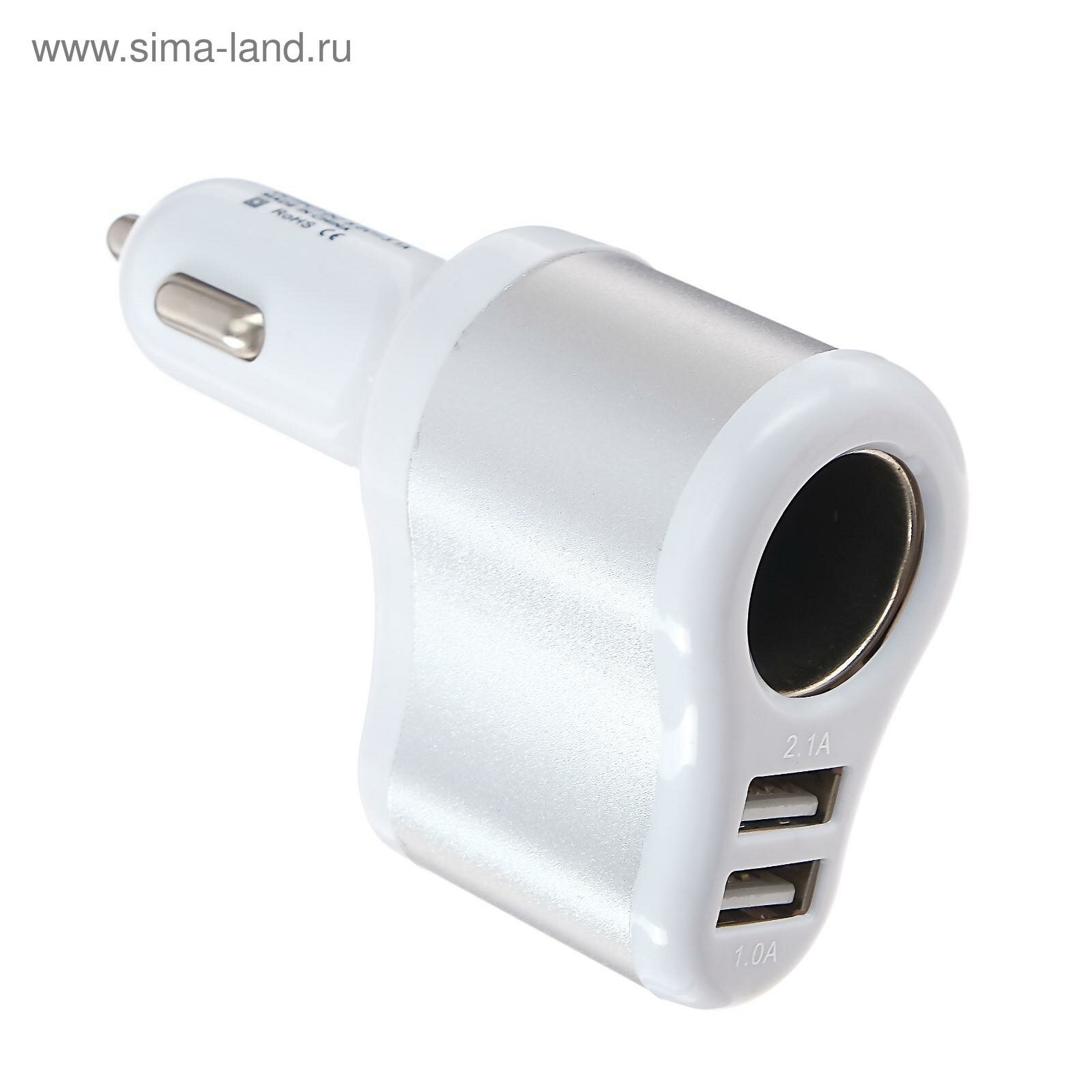 Купить Разветвитель прикуривателя, 1 гнездо, 2 USB 1 А / 2.1 А, 60 Вт, 12/24 В, микс