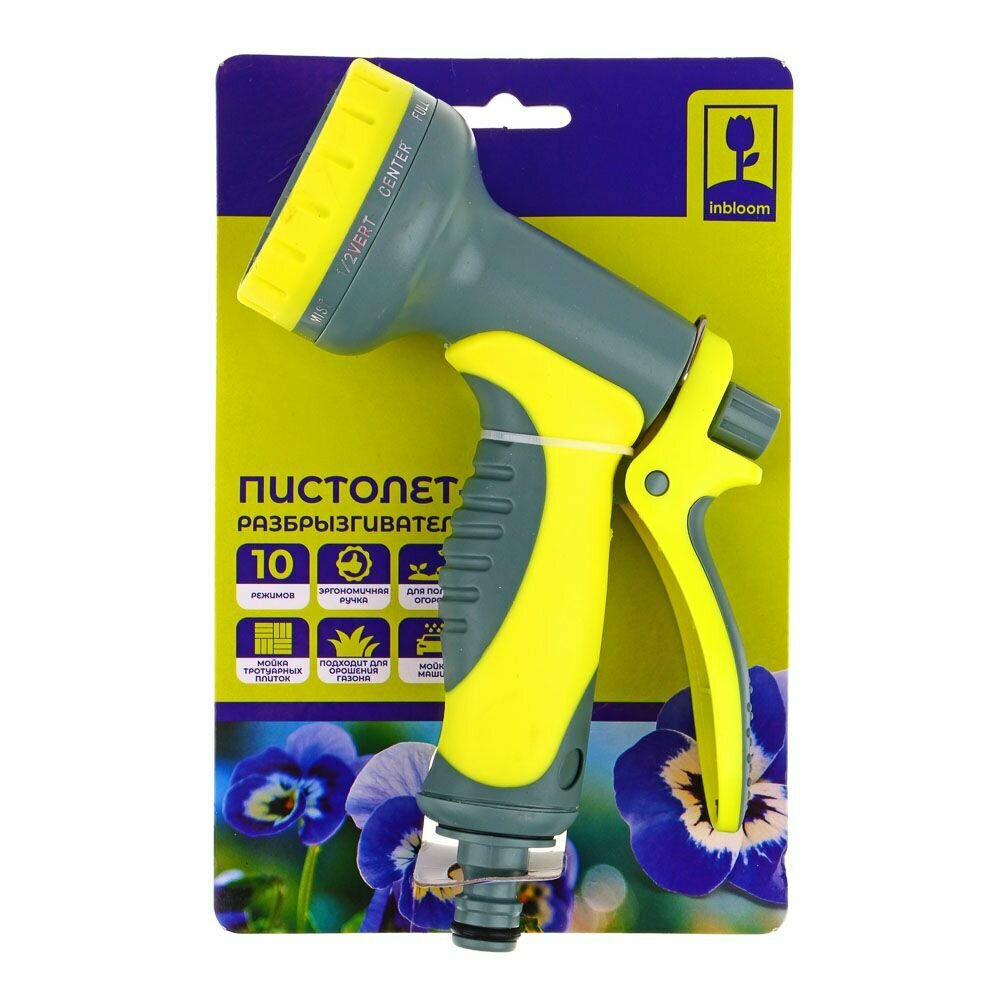 Inbloom Пистолет-разбрызгиватель, 10 режимов, эргономичная ручка, нейлон, пластик 161-012 . интересное: