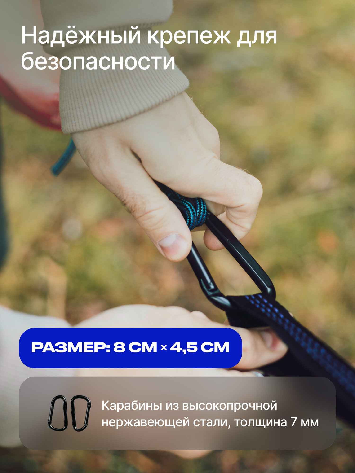 | Плюсы: | прочная практичная ткань, крепкие карабины, очень легкий, компактный собранный в чехле, войдет в любой рюкзак, сумку |