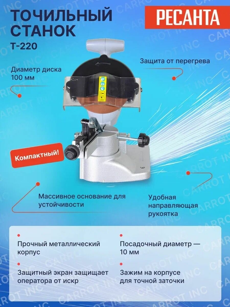 Станок для заточки пильных цепей 220ВТ 6000 об/МИН ВЕС 2,4КГ РЕСАНТА