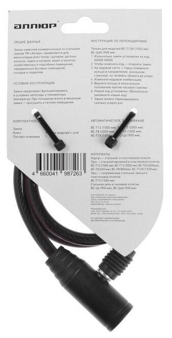 Ниже Вы можете прочитать отзывы на Велосипедный противоугонный замок аллюр ВС-Т 8 (800 мм) тросовый, ознакомится с подробными характеристиками, посмотреть интересные обзоры и фотографии на Велосипедный противоугонный замок аллюр ВС-Т 8 (800 мм) тросовый.