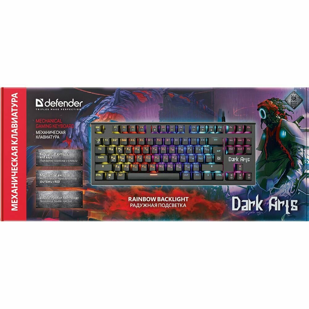 Клавиатура игровая Defender Dark Arts, механическая, Outemu Red, 87 клавиш, черная