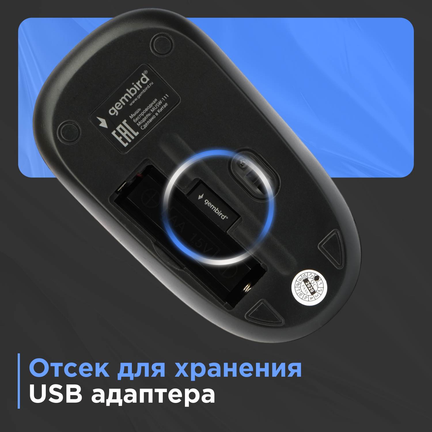 Мышь Gembird MUSW-111-GRN, беспроводная, оптическая, 1200 dpi, 2.4 ГГц, 1xAA, USB, зелёная Gembird 4