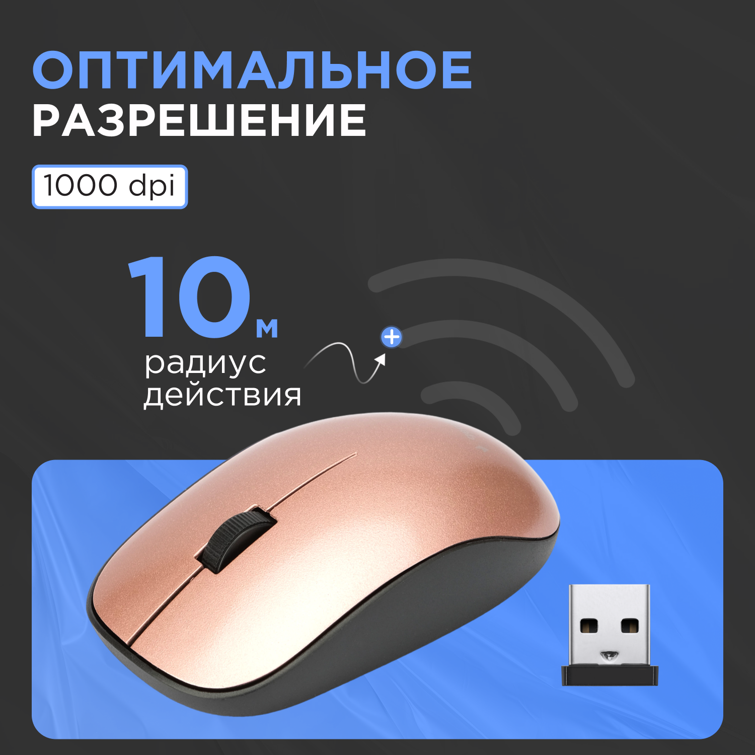 Мышь MUSW-111-RG, беспроводная,оптическая, 1200 dpi, 1xAA, USB, цвет розовое золото