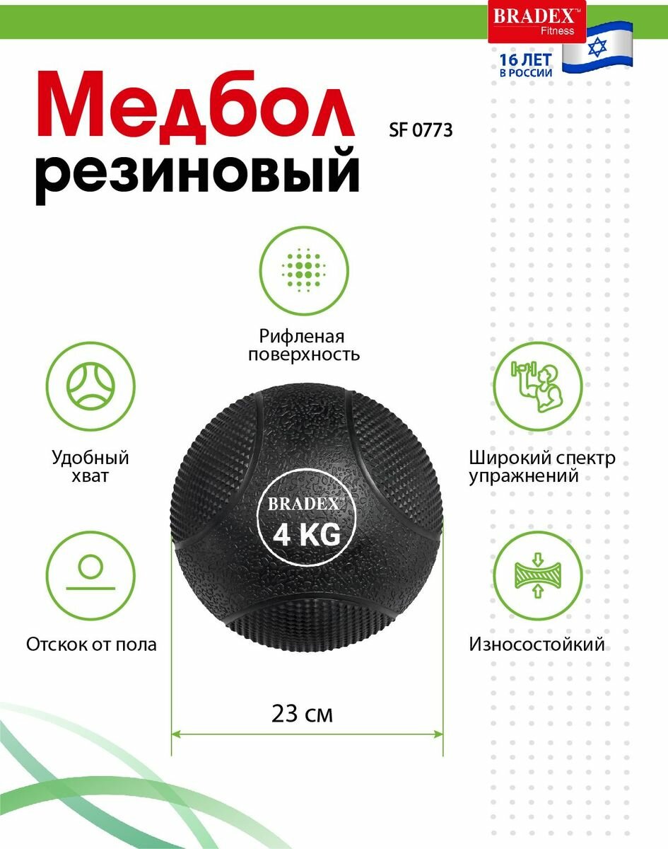 BRADEX Медбол резиновый, Bradex SF 0773, 4кг, BRADEX интересное:
