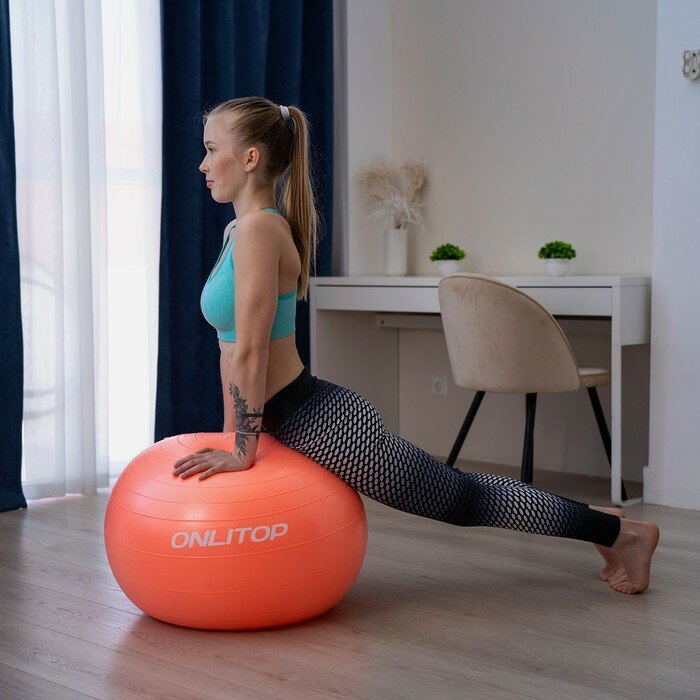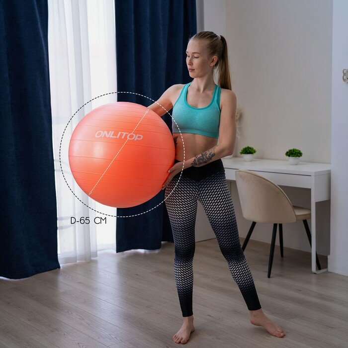 Фитбол, ONLITOP, диаметр 65 см, вес 900 г, антивзрыв, цвет оранжевый
