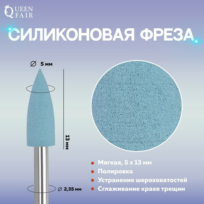 Купить Queen fair Фреза силиконовая для полировки, мягкая, 5 × 13 мм, цвет голубой
