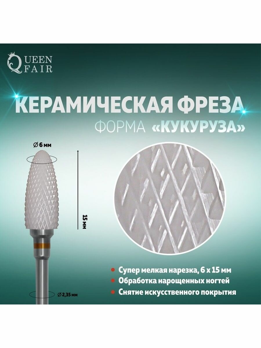 Queen fair Фреза керамическая для маникюра «Кукуруза», супер мелкая нарезка, 6 x 15 мм