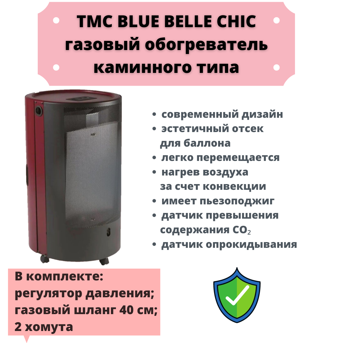 Газовый обогреватель каминного типа ТМС BLUE BELLE CHIC 4,2 кВт Красный интересное: