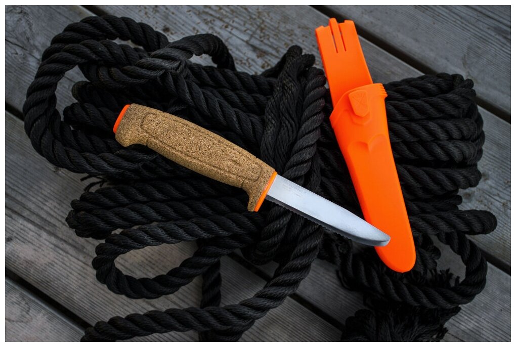 СохранитьНож Morakniv Floating Serrated Knife, нержавеющая сталь, пробковая ручка, оранжевый. 13131 интересное: