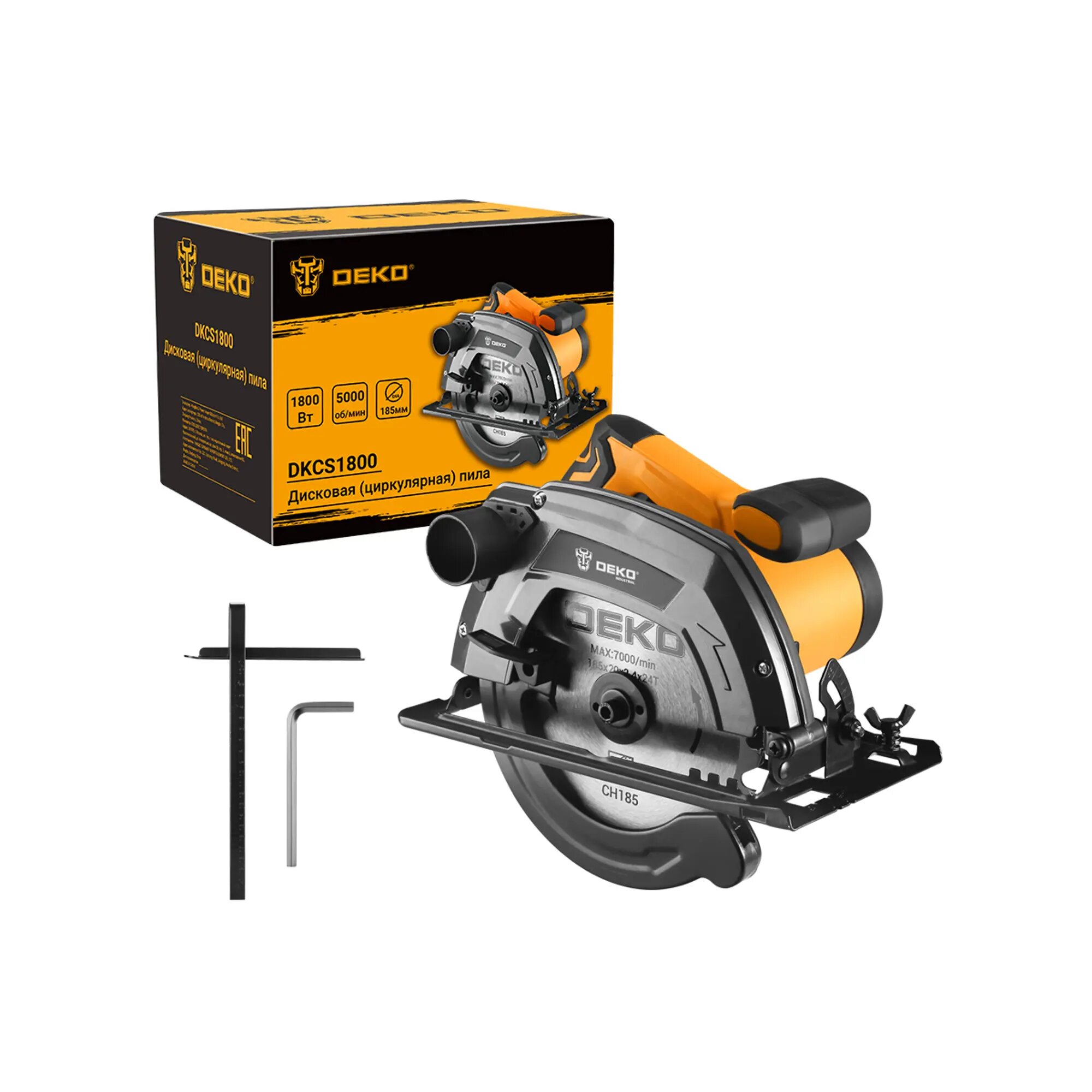 Дисковая (циркулярная) пила Deko DKCS1800 1800Вт 185мм диск черно-желтый