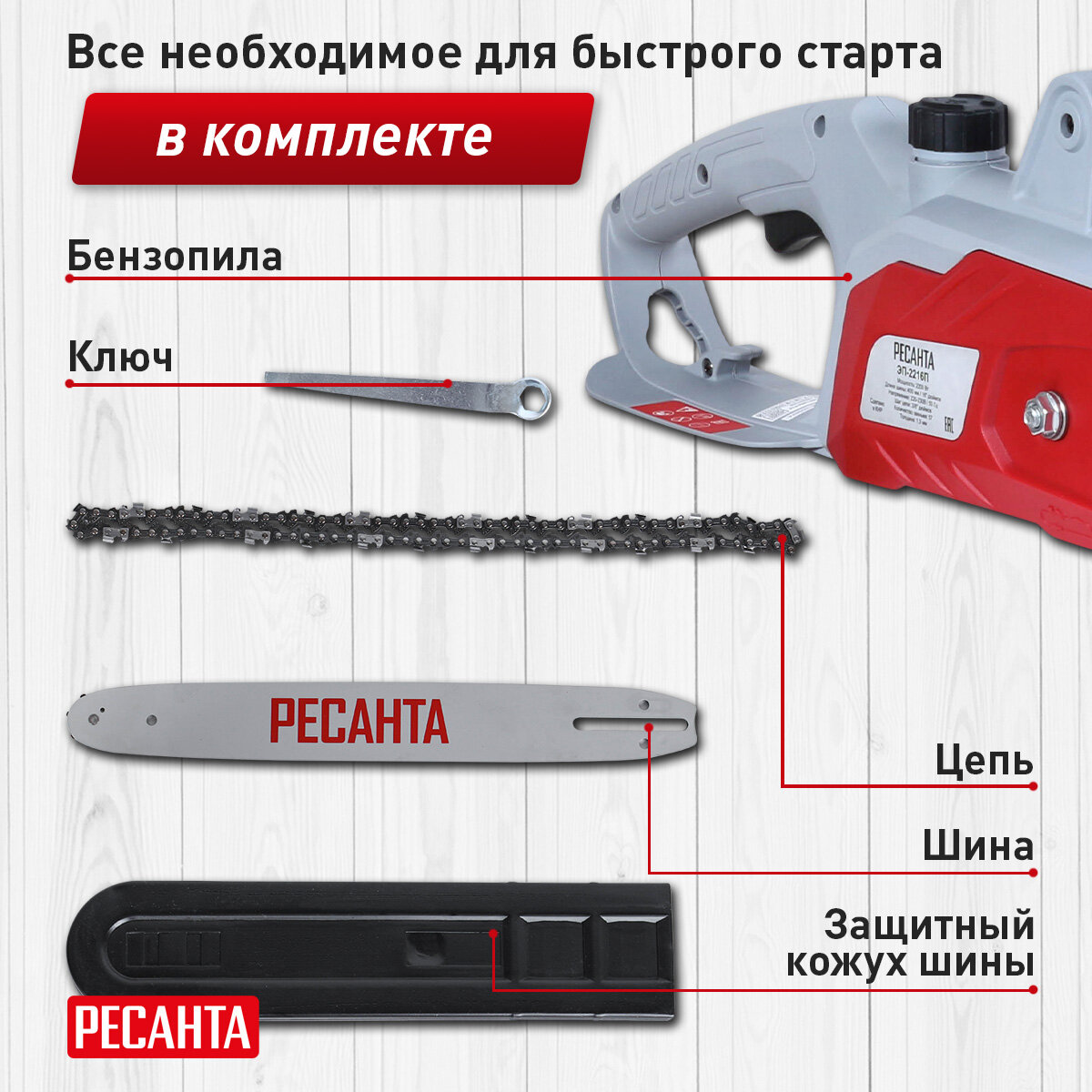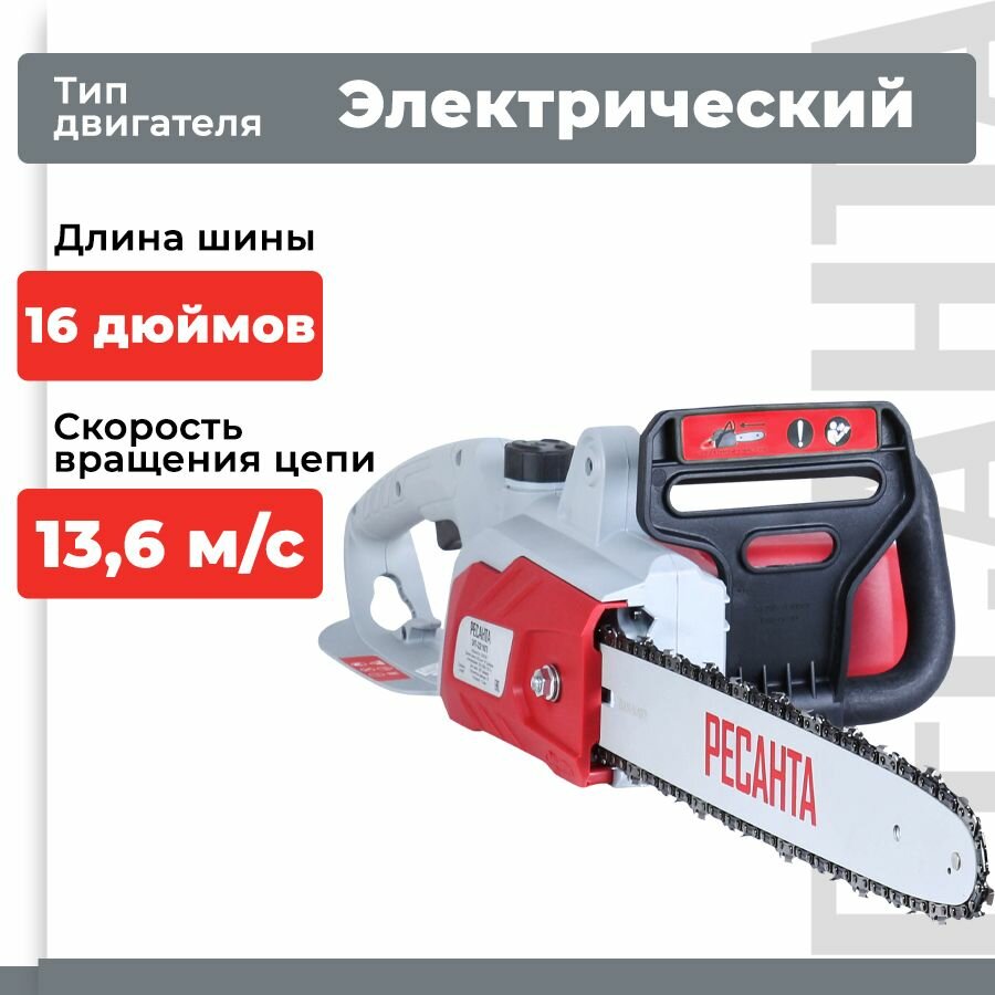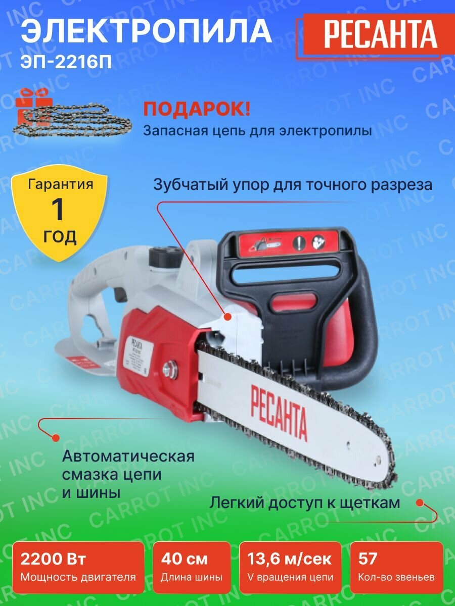 Пила цепная электрическая Ресанта ЭП-2216П (70/10/13) 2200 Вт 16" шаг 3/8" паз 1,3 мм 57 звеньев