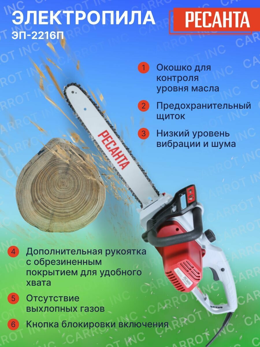 Электрическая цепная пила Ресанта ЭП-2216П 2200Вт дл.шин.:16" (40cm)