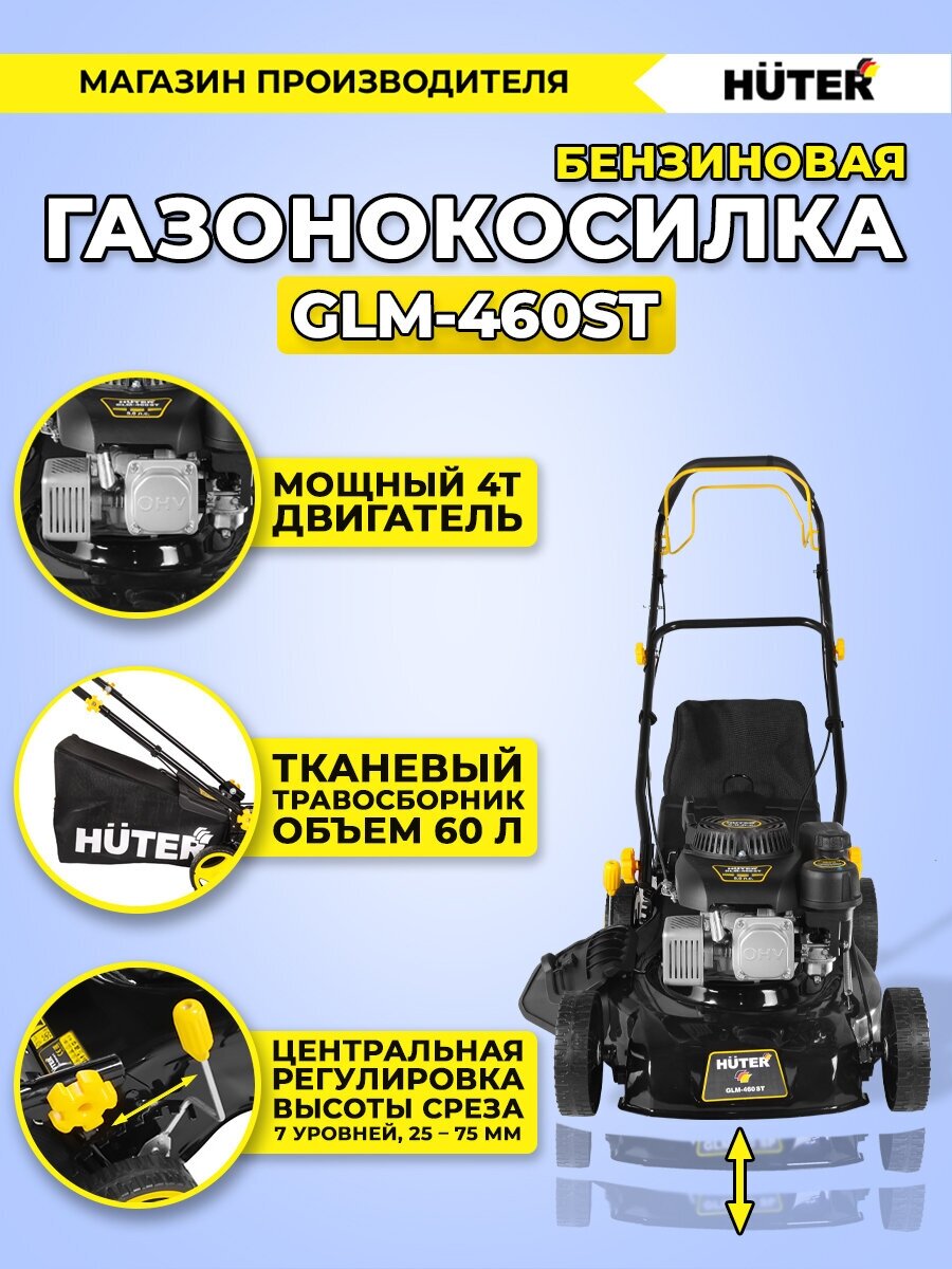 Ниже Вы можете прочитать отзывы на Бензиновая газонокосилка Huter GLM-460ST, ознакомится с подробными характеристиками, посмотреть интересные обзоры и фотографии на Бензиновая газонокосилка Huter GLM-460ST.