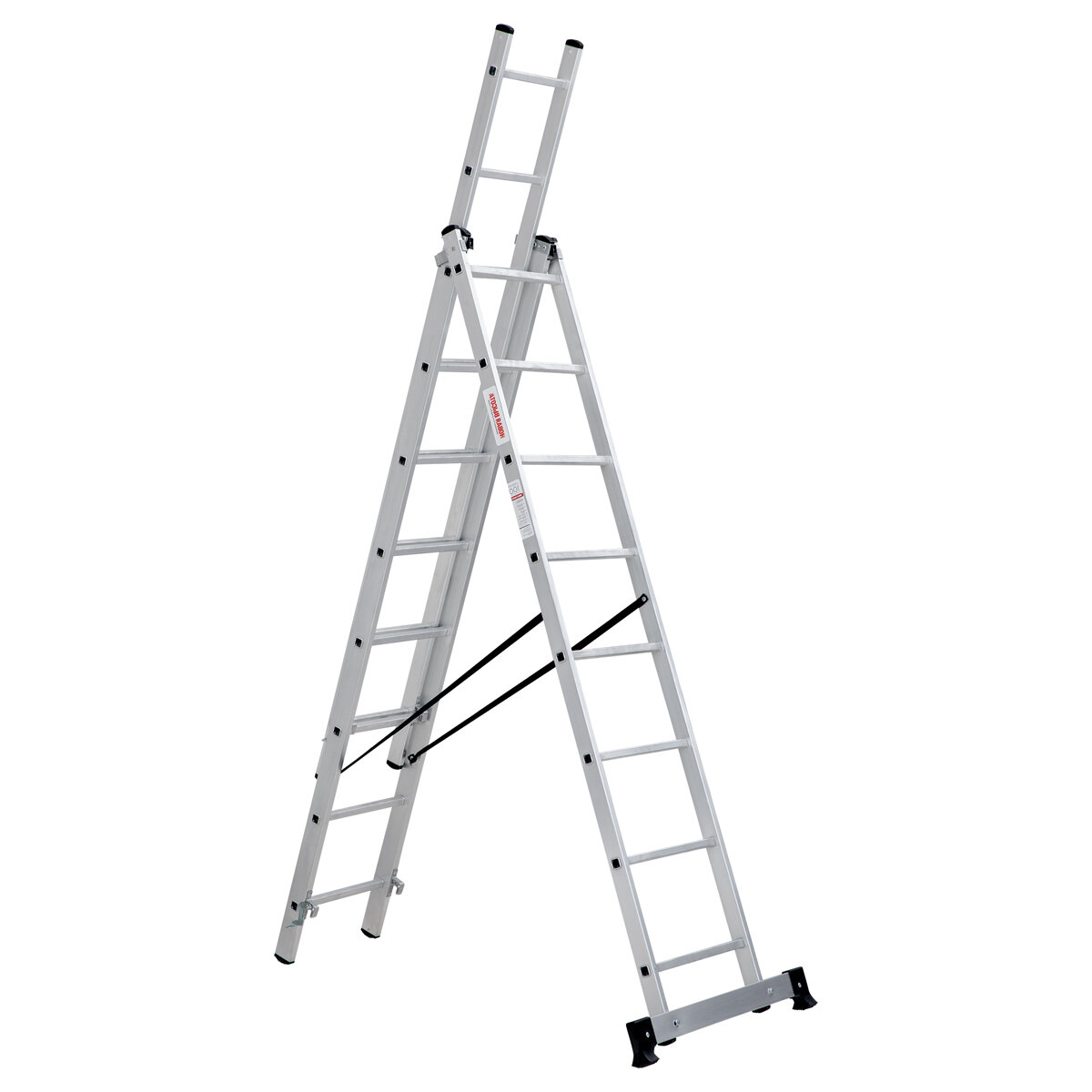Купить Лестница-стремянка трехсекционная Новая высота NV 1230, алюминиевая, 3 x 8 ступеней, 2,14 - 4,74 м
