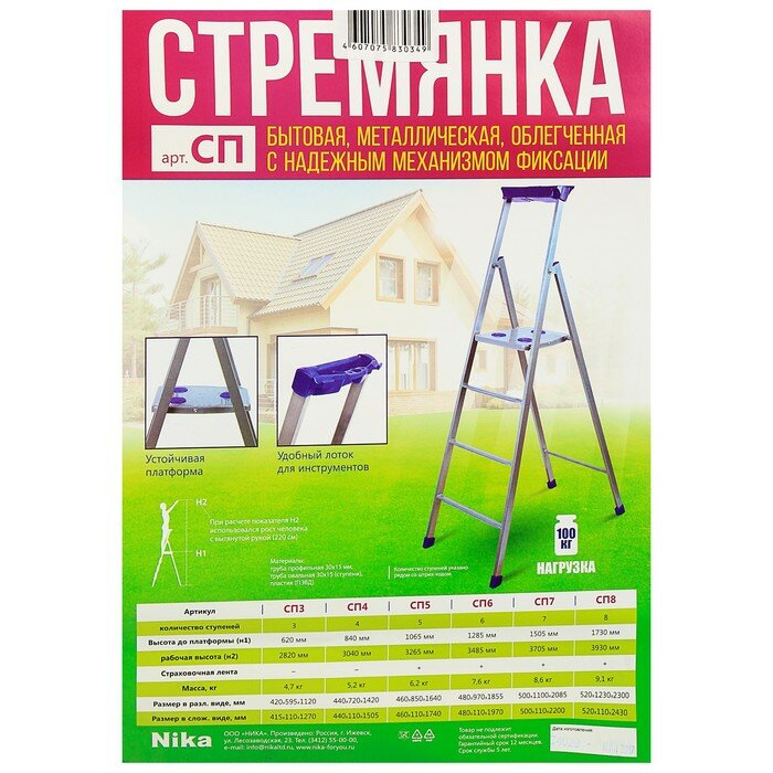 Ниже Вы можете прочитать отзывы на Nika Стремянка Nika СП4, высота до рабочей площадки 845 мм , 4 ступени, ознакомится с подробными характеристиками, посмотреть интересные обзоры и фотографии на Nika Стремянка Nika СП4, высота до рабочей площадки 845 мм , 4 ступени.